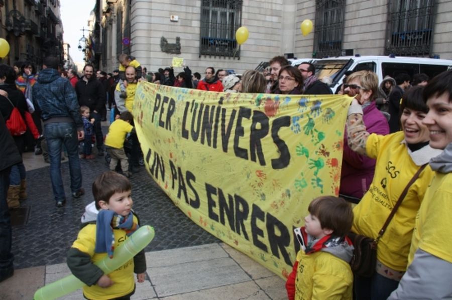 Centenars de persones –encapçalades per associacions d’estudiants, pares i sindicats– es concentren aquesta tarda a la plaça de Sant Jaume de Barcelona per protestar contra les retallades en l’educació pública i per advertir dels riscos que comporten les mesures anunciades pel Govern de la Generalitat.