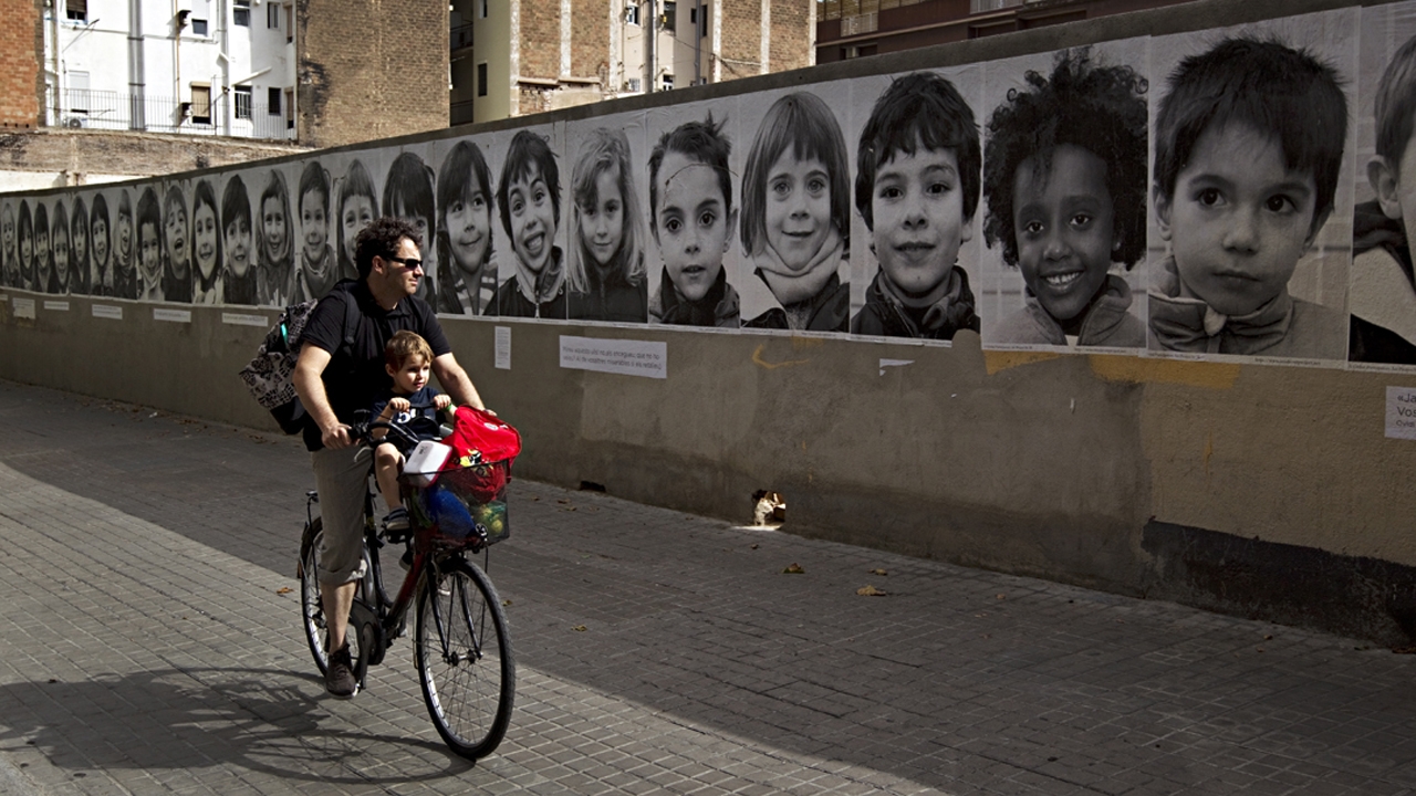 L’Escola Univers, a la vila de Gràcia, no ha conegut altra cosa que barracons. És jove (2009) però al setembre hauria hagut d’estrenar edifici. No ha estat possible. I protesta per la situació amb 56 grans fotografies de nens de l’escola, que es fan notar. El format correspon al projecte artístic Inside Out.
