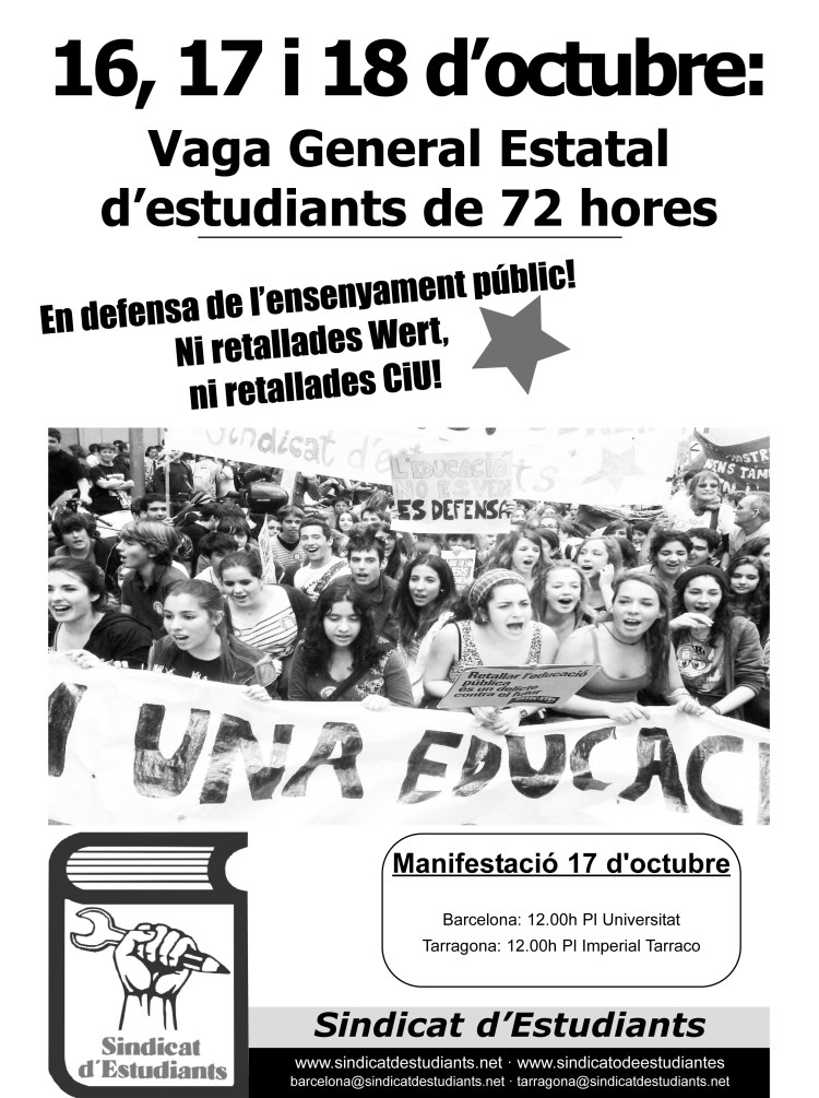 Per primera vegada en la història els pares i les mares d’alumnes convoquen una vaga general en l’àmbit educació. Serà el 18 d’octubre i els convocants són la Confederació Espanyola d’Associacions de Pares i Mares i la Plataforma Estatal per l’Ensenyament Públic. Ambdues organitzacions demanen que aquest dia les famílies no portin els infants a l’escola. Consideren molt greu l’estat del sistema educatiu, condemnen els retalls de Govern i demanen la dimissió del ministre Wert. La vaga s’inserirà en una “setmana de lluita” que inclourà diverses actuacions.