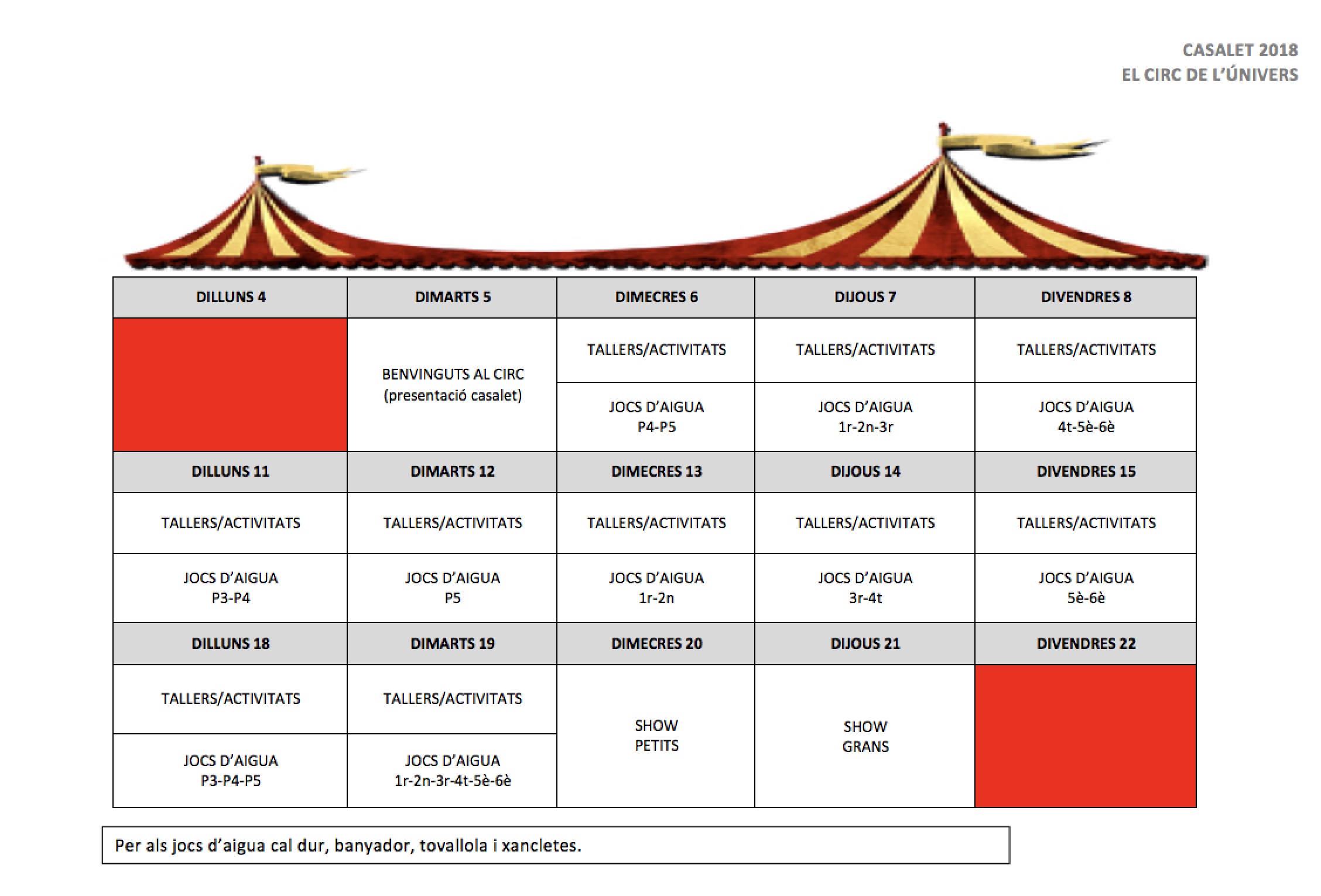 Aquí podeu consultar la programació i el que heu de portar els dies de jocs d’aigua.