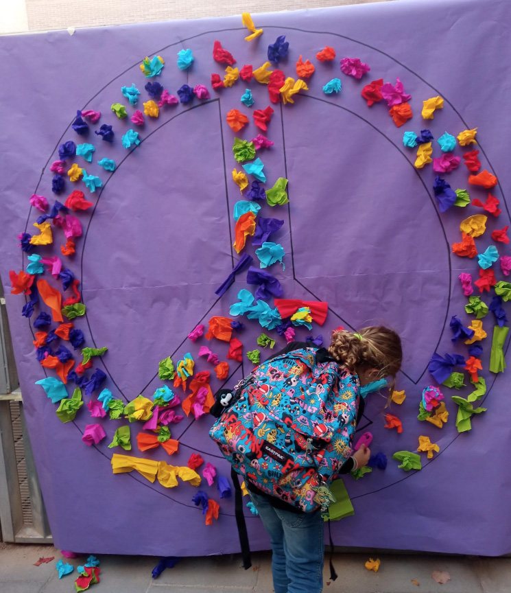 A l’escola l’Univers també hem actuat pel 25N i la lluita contra les violències masclistes: hem conegut dones d’arreu del món #enPeuDePau, hem reflexionat sobre què podem fer en els nostres espais i hem posat el nostre granet de sorra (paper) per una Pau comuna i plena de vida