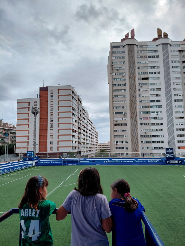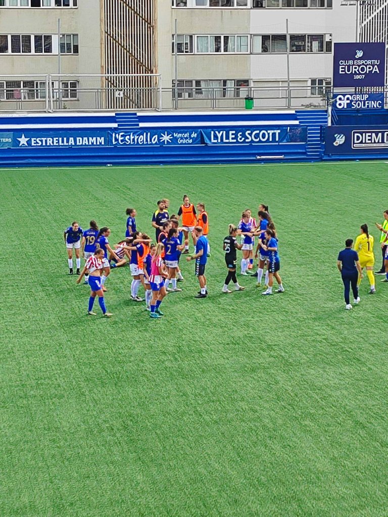 Aquest diumenge 12 d’octubre, una nombrosa representació de famílies de l’escola —unes 130 persones— hem assistit al partit de futbol femení entre el Club Esportiu Europa i l’Atlético de Madrid B, convidats pel mateix club gracienc.
