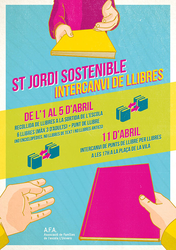 De l’1 al 5 d’abril, a la sortida de l’escola (de 16.30h a 17h), podeu portar els llibres en bon estat que vulgueu intercanviar. Es podran portar fins a 6 llibres per participant (com a màxim es poden entregar 3 llibres d’adults). A canvi, us donararem un punt de llibre per llibre lliurat. Material no vàlid per aContinua llegint “SANT JORDI SOSTENIBLE. INTERCANVI DE LLIBRES”