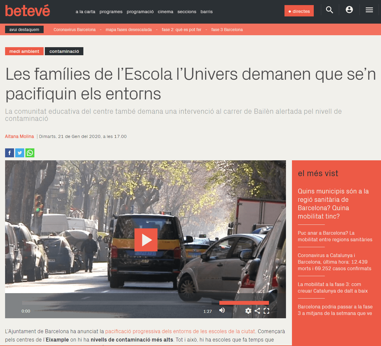 Des de l’AFA de l’escola estem treballant per un entorn sense fums i menys contaminació. Aquí teniu la noticia de Betevé on es recull la reivindicació de les famílies de l’Univers per un entorn segur i saludable per als nostres nens i nenes! Per un Univers sense fums! Feu-ne difusió i sobretot compartiu a xarxesContinua llegint “L’AFA reivindica pacificar Bailén, millorar la plaça John Lennon i reduir el trànsit a Quevedo”